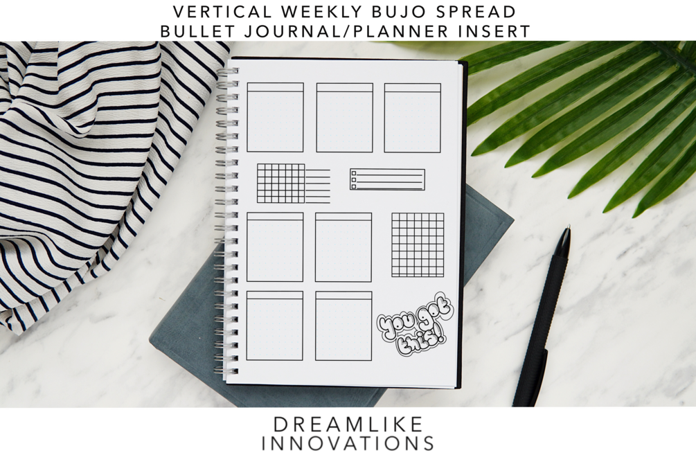 INSTANT DOWNLOAD: BUNDLE - 4 Vertical Weekly Bullet Journal Spreads - Bujo Planner Inserts Digital Download Printable Goodnotes PDF